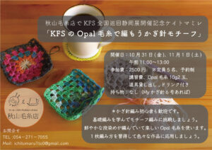 【WS終了】10月31日(土)、11月1日(土)「KFSのOpal毛糸で編もむかぎ針モチーフ」