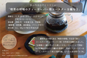 【WS終了】11月23日(日)27日(木)「喫茶の坩堝のティーサーバー用コースターを編もう」